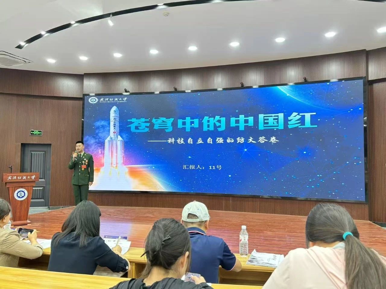 决赛中,吴茂林以“苍穹中的那一抹红画作——科技自立自强的纺大答卷”为主题,围绕习近平总书记在人民大会堂接见探月工程嫦娥六号任务参研参试人员代表时发表重要讲话和习近平总书记关于加强和改进民族工作的重要思想展开宣讲,分别展示了学校在科技自立自强方面的成就,以及荆楚大地中华民族多元一体的内涵。