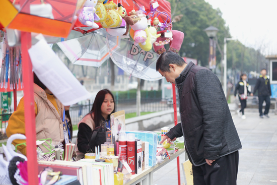 (爱心人士在询问义卖商品)