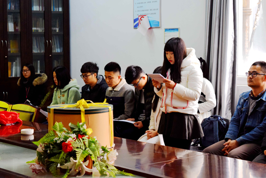 学生党员“政治生日”是指其被支部大会讨论通过为预备党员的周年纪念日。活动伊始,全体党员重温了入党誓词,再一次向党组织庄严宣誓。接着,学生党员代表汇报了自己在预备期里的成长经历和感受;学院各学生支部副书记表演了诗朗诵《党颂》,回顾了中国共产党成立之初的情景。与会领导和老师为参加本次活动的40余位学生党员赠送了“政治生日”贺卡。