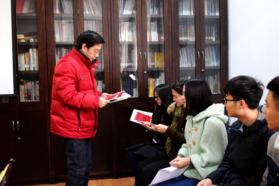 (胡书记为学生党员颁发党员政治生日贺卡)