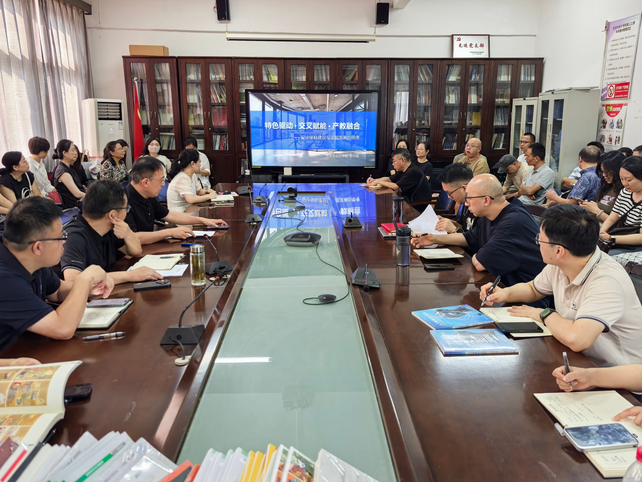 院长石元伍作《绿色驱动 交叉赋能 产教融合——设计学科建设与学院发展的思考》主题汇报,系统分析了学院学科建设现状、优势与不足和未来发展方向。