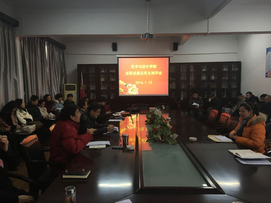 1月12日,艺术学院在南湖校区艺术楼二楼会议室召开了学院领导班子述职述廉及民主测评会,学院全体领导班子、全体教职工参加了测评会。会议由学院分党委书记胡中原主持。