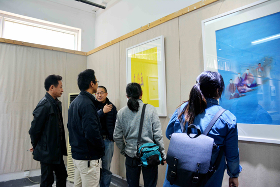 (黄老师为前来参观的师生们介绍绘画作品)