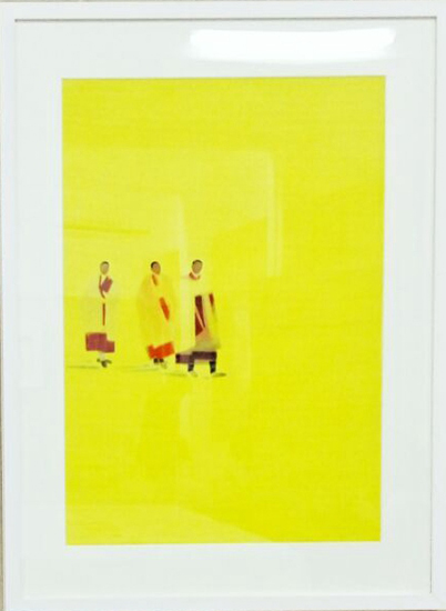 黄老师除了专研艺术创作,对佛教和藏教文化也颇有研究,从这次展出的作品中不难发现每幅作品都隐喻了许多寓意,例如黄色菩提——新的无限光明,任凭思维如何想像也无法企及,不过是一滴水而已,那一滴水如同布满画纸的黄色,无论如何他看起来太有限,我想把它投入祈愿的大海使它永不枯竭。佛教艺术蕴含了深厚的宗教、哲学的义理,有着悠久丰厚的历史沉淀,是古代艺术创作的主流门类之一。黄老师将佛教文化巧妙的融合到艺术作品中,以此阐述艺术创作的构思、方法与目标。