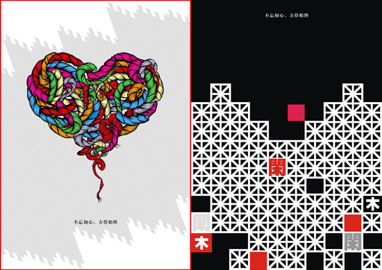 学院视觉传达系主任曹刚老师介绍说,对于研究生的专业培养,我们正在寻找既适合他们创作艺术作品又能为他们提供学习和交流的艺术平台,除了将国内外艺术比赛融合到课程设计中,还另外给研究生提出了实践创新的要求,这样不仅锻炼他们的创造思维,也能推动艺术设计的发展,接轨最前沿,最流行的时尚元素,将它们有机的结合到设计作品中,给参观者更强的视觉冲击。