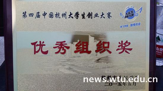 “引领大众创业,促进万众创新”。5月22日至26日,第四届中国杭州大学生创业大赛在浙江工业大学举行。我校艺术、传媒学院学生申报的公益创业项目“蓝灯自闭症家庭服务中心”、经济学院学生申报的创业项目“武汉童伴成长咨询服务有限公司”分别获得“实践组”和 “成长组”三等奖,并获得湖北省唯一的优秀组织奖。