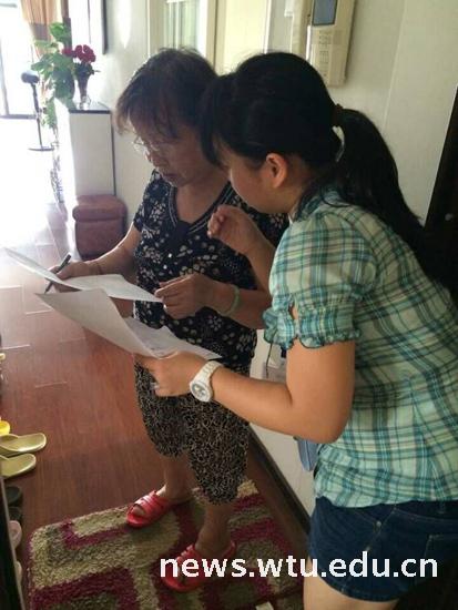 活动中,实践队员两人为一组,深入到居民家中,发放调查问卷,问卷就被调查者的个人基本情况、对社会主义核心价值观的了解、认同度、具体内涵的理解等情况进行了全方面调查。在保利社区居民委员会的大力支持下,社区居民积极配合,认真填写了问卷。一位有着50多年党龄的老党员李爷爷在被调查中说道:“调查社会主义核心价值观非常有意义,要在增强市民认知认同层面下功夫,使其深入人心,每个居民都应该充分践行”。同时,受街道、居委会委托,艺术学院暑期社会实践队携手其他志愿者、街道社工,共计60多人,作为第三方工作人员,协助居委会深入到2000多户居民家中,完成了业主委员会换届选举的选票登记工作,得到了居委会的感谢和好评。