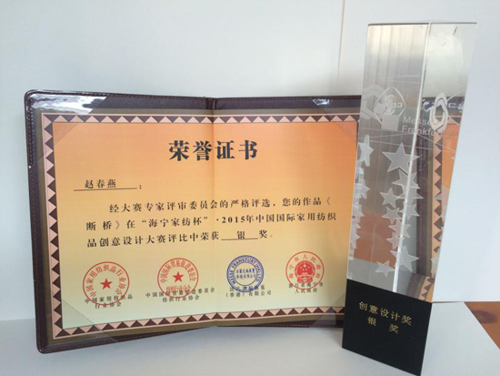 李明娟)获得“海宁家纺杯” 2015中国国际家用纺织品创意设计大赛银奖。