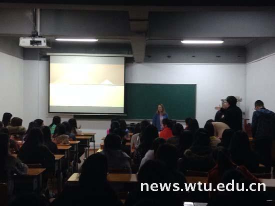 3月24日,“_”娜达莉亚在南湖校区艺术楼二楼多媒体教室为艺术学院师生作了题为“装饰工艺”的学术报告。