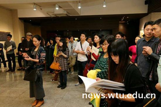 3月31日晚,艺术学院2012级公共艺术专业11201班和艺术投资与鉴赏专业11201班的4名学生受邀参加了2015“多元共生”彭震中、王斌、李贤术作品展。