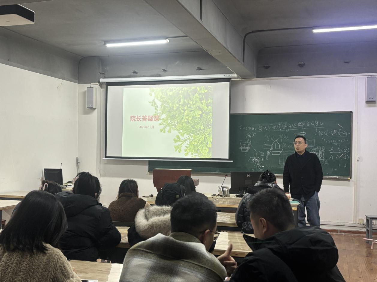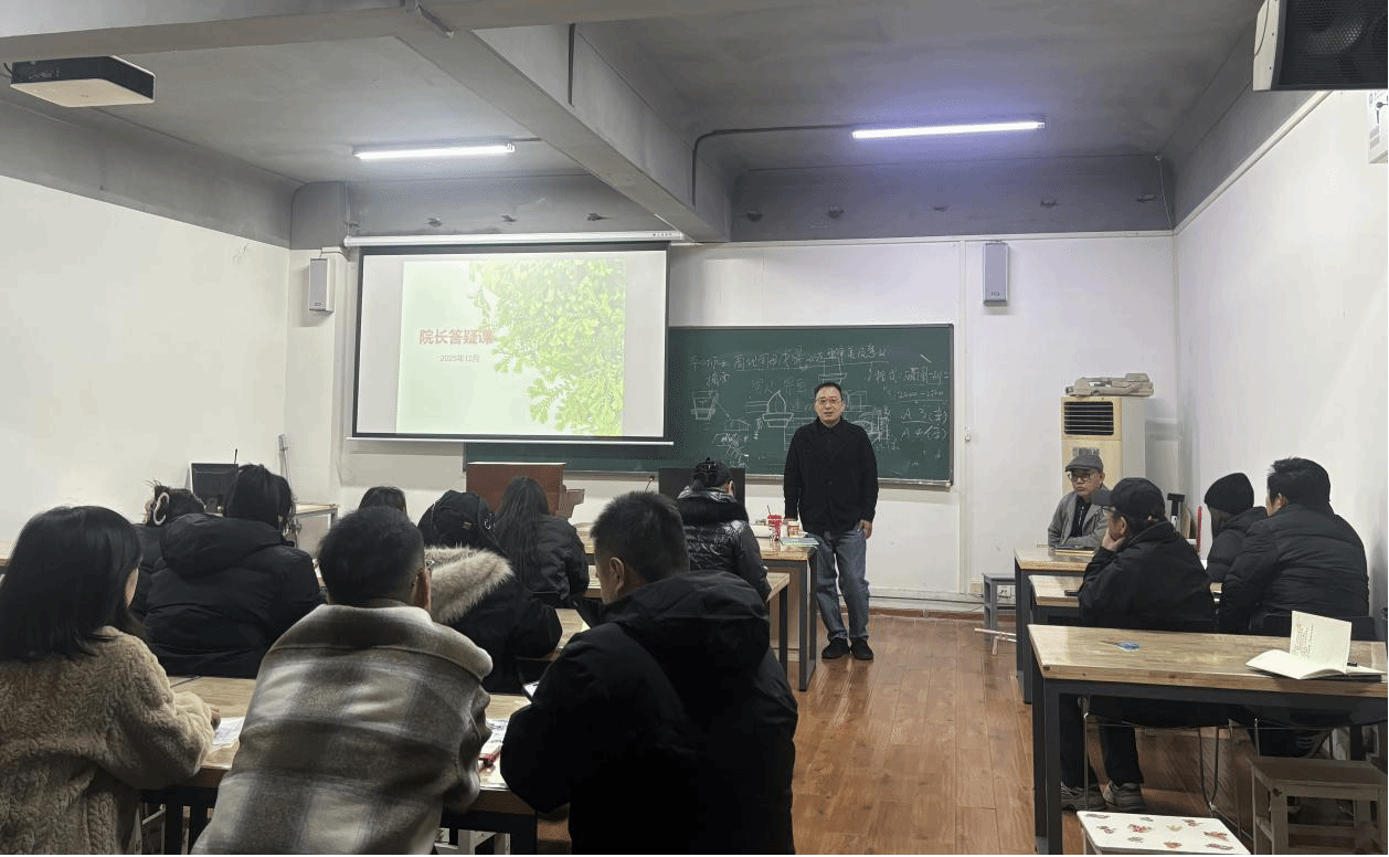 在艺设楼东北210举办院长教学答疑课。院长石元伍、党委书记刘元文、副院长曹凯、党委副书记吴双、各专业系主任及各年级学生代表参与本次活动。