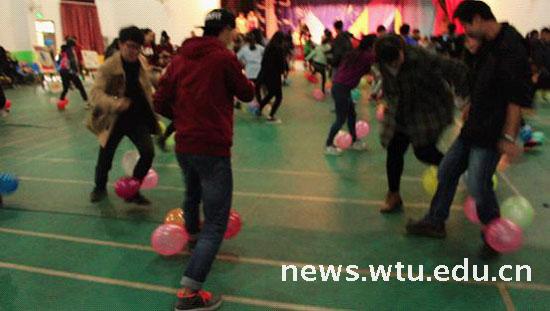 为全面提高我院学生的综合素质,帮助大家更快更好地适应大学生活,丰富大学生课余活动,11月14日下午,艺术学院分团委组织各团支部学生干部在大学生活动中心二楼开展了素质拓展训练活动。