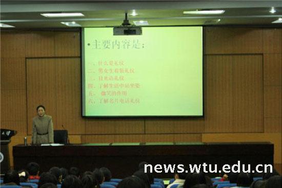 通过这次主题讲座,让同学们深层次的理解了礼仪的含义,更重要的是教会了同学们如何在人际交往中规范使用礼仪。