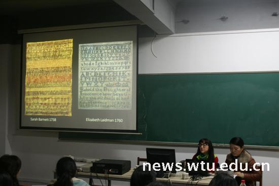 Susan教授以纤维最基本“编”为切入点,解释了何为“编”,从编织的历史到编织的多种的语言形式再到编织表现出来的力量,进行了全方位细致的展示。Susan教授介绍了包括Anne Wilson ,Gyongy Laky ,Ligorano和Lia cook在内的五位纤维艺术家的作品进行了讲解、分析,分别从各自的不同的艺术表现语言,向学生们阐释了艺术纤维注重于编织的过程,是同生活密切相联系的艺术表现形式,记录生活的最初手法。“不同的艺术作品语言,决定了作品的艺术审美。”Susan如是说,不同的艺术语言所呈现的作品体现了不同的概念,不同的形式,不同的手法和不同的材料。在最后的提问环节,在场师生们与susan教授就中西方纤维艺术的差异进行了深切的探讨和交流。