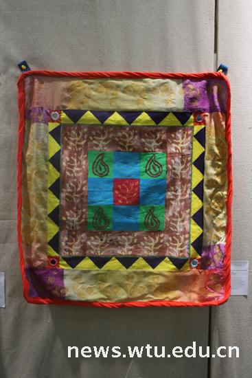 的作品立足于中国传统文化工艺,结合自身专业特色,利用传统工艺创作,表达华夏民族情怀。值得一提的是Susan教授在其作品中运用了新型材料pva(聚乙烯醇、无污染,可降解新型纺织材料),环保理念贯穿作品,创新的手法令前来参观的同学感受到最前沿的纤维艺术理念,更拓展了同学们对纤维艺术创作的国际野。