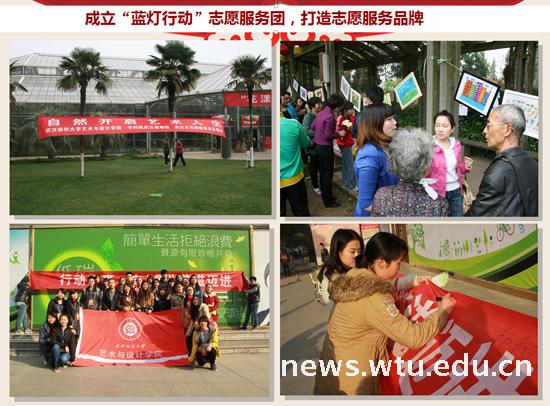 安全管理条例》等7项相关文件;我院“蓝灯行动”志愿服务团与中科院武汉植物园、武汉市自闭症亲友互助会、万科集团联合举办自闭症儿童绘画展及义卖活动帮助他们开启艺术人生,受到社会及多家媒体赞誉;我院第十五届成才美育节在武汉新世界百货启幕;学院大学生创新创业实践团队形成一个注册公司、六个团队工作室、五个专业方向为基础的创业实践团队,今年,活体雕塑工作室的学生已经在多个地方进行了商业演出,墙绘工作室在益达杯创业大赛中获得第三名的好成绩。