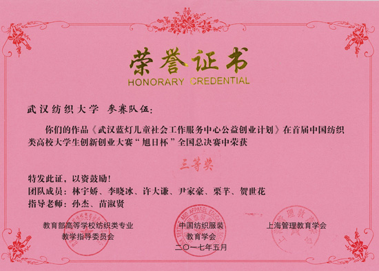 八、学院师生在湖北高校第七届美术与设计大展中喜获佳绩,获得中国纺织类高校创新创业大赛三等奖,获2017年度全国纺织服装信息化教学研究课题1项;