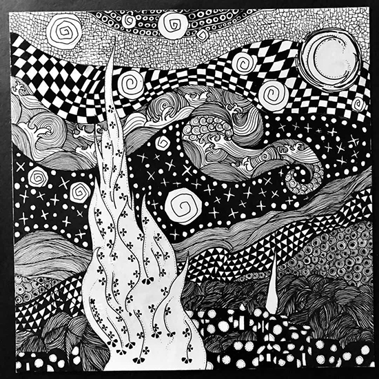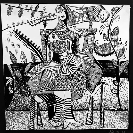 其中名家名画装饰性再创作,是一个新的表现与尝试。学生们选择自己喜爱的名家名画,用黑白装饰的语言,与传统的中外装饰纹样结合,进行了全新而丰富的设计。诸多构思精妙的作品,体现了环艺11602班的同学们对装饰艺术的独特理解和个性演绎,在不断的夸张、抽象、分析、表现中,展现了学生对装饰美的思考,对形式美的体会。大家的认知与创新思维得到了开拓与升华。