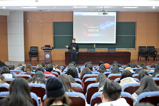 应宏先生以“互联网+艺术”作为切入点,从“大学怎么过,决定未来怎么过”、“进企业所需要的能力”、“双11的故事”、“品味影响格局”、“消费升级的本质是审美升级”和“跨界是创新的源泉”等几个方面进行讲解。其中他提到大学四年是人生的一个重要阶段,在大学所锻炼的组织能力,社交能力,专业素养等都是今后进入企业的“通行证”,对个人的发展极为重要。并且他鼓励同学们勤拿奖学金,加入学生会和积极向党,以此来锻炼自己。另一方面应宏先生通过讲述自己接手双11的故事来讨论我们艺术专业的前景和方向组织靠拢,指出同学们要充分发挥自身的品味和审美眼光来打造竞争力。应宏先生说:“任何行业的创新都来自行业之外,即使不是互联网专业也能在互联网行业干出一番事业。”