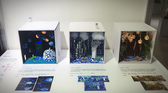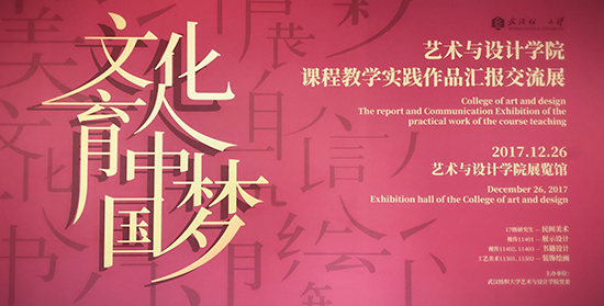 一楼展厅展出。展览汇集了民间美术、展示设计、书籍设计、装饰绘画等4门实践课程,覆盖了17级研究生、14级本科生、15级本科生等三个年级学生,遴选出百余件课程实践作品。