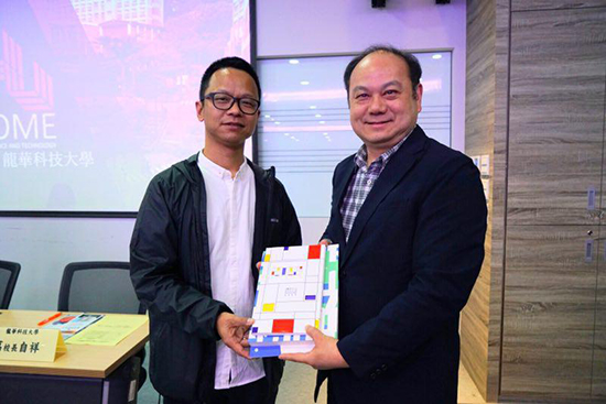 (曹刚副院长向台湾龙华科技大学校长赠送我院毕业生作品集)