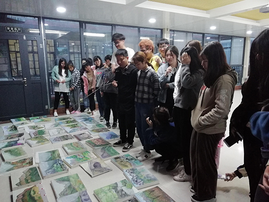 4月10日-14日,在老师的带领下于石板岩周边写生,这里巍峨高大的山激发了同学们绘画的兴趣。首先,老师给学生讲述写生油画的基本方法,强调万事重在感受,应善于观察写生对象。然后,老师们为学生做范画,同学们争相认真地看老师绘画。