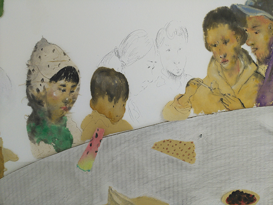 张人杰老师表示,创作中他不断探索和实践水墨的可能性,以期对创作命题进行富含个人性的言说。进而从中提炼、重组、形成具有自身特点的绘画语言。相较他之前采用的油画材料来说水和墨的偶然性和不确定性给他带来了更多的惊喜和空间,他喜欢颜色在水的作用下在纸面上沁染出的迹象,色彩与形象交融形成浑然的一体。工作之余,他开始思考作品在创作及展呈手段上的多样性。以期通过材料、多媒介的运用与观者产生更为丰富的对话。