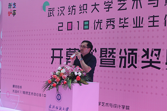 院长傅欣教授发表了讲话,艺术学院始终坚持文化传承与发展,不断探索才培养模式和特色专业建设,作品展以传承、发展为理念,将文化传承融入到教学中,积极探索教育的办学规律,努力推进艺术设计与科学技术、民族文化和创意文化产业相结合。