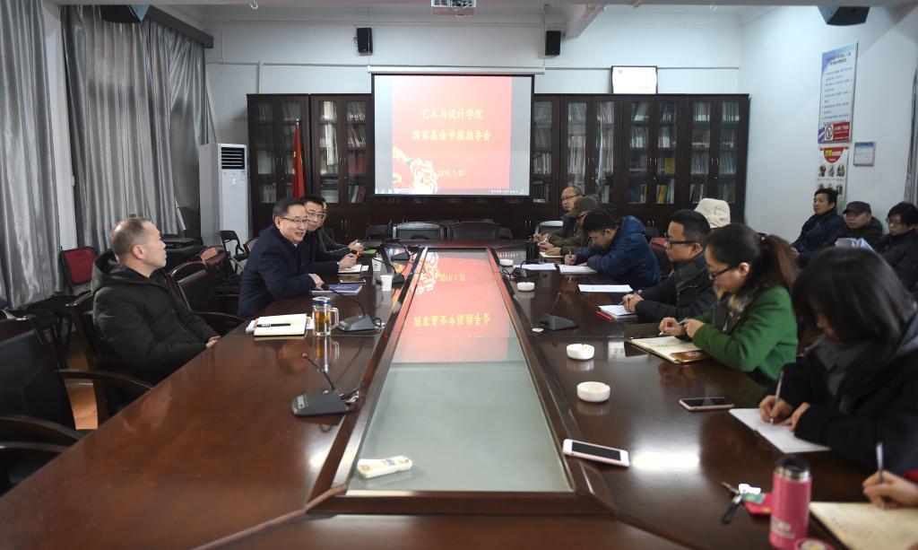 校领导的亲临指导之外,艺术与设计学院还开展了2019年国家基金申报交流会、培训会、专家座谈会。1月20日,学院举行了2019年度国家社科基金申报工作交流会,会上傅欣院长通报了学院近三年国家基金申报及获批情况,详细介绍了学院历年基金申请立项情况,鼓励老师们积极申报课题,为老师们申报课题出谋划策。陈良栋书记也作了发言,强调了申报国家基金的重要性,并承诺为老师们提供后勤保障,以解老师们后顾之忧。1月21日,学院再次集中,以系部为单位组织相互交流,并邀请学院刘凡博士为老师们的申报书进行针对性的指导。1月23日,学院聘请了校外专家武汉大学博导范明华教授来学院指导申报工作,申报老师认真聆听了范教授的经验之谈,会后积极与专家交流,此次培训会极大地鼓舞和激励了申报老师。1月24至26日,老师们对申报书进行进一步的凝练,以系部为单位组织反复讨论、修改,更好地完善申报书并形成定稿。