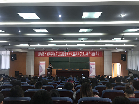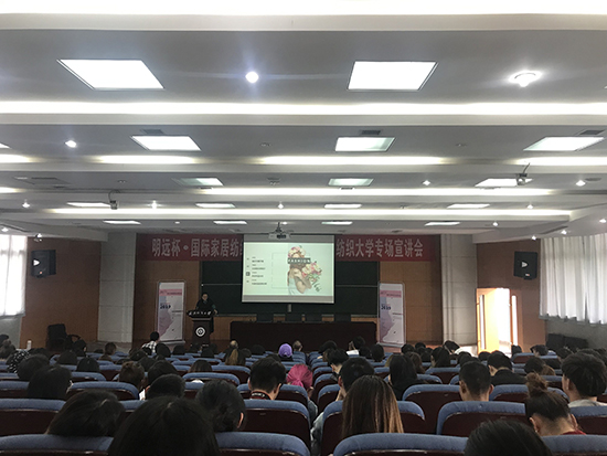 学院工艺美术系李明娟老师作了宣讲报告,她从设计大赛背景、大赛主题、参赛内容和作品案例分析四个方面根据不同专业对学生进行了参赛指导。在宣讲中,李老师结合作品案例,详细的描述了一套家纺作品是如何孕育而生,包括围绕比赛主题、开拓设计思维、设计作品对比和实物构图等。宣讲结束后,李老师和学生们进行了交流互动。