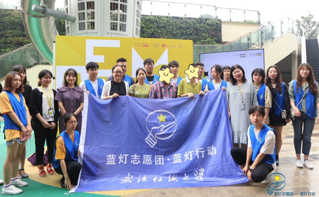 党委副书记张鹏、蓝灯志愿团指导老师漆晚霞、自闭症儿童及家长代表以及K11艺术村工作人员、 蓝灯志愿团成员、百合漫画