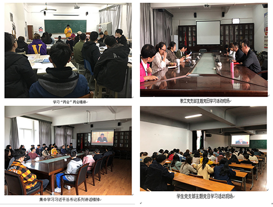 2019年,学院认真学习贯彻习近平新时代中国特色社会主义思想和党的十九大精神,切实做到以马克思主义理论为指导思想,坚持中国特色社会主义,坚持理想信念教育,建设学习型、服务型和创新性党组织。坚持开展“两学一做”、“三会一课”、“主题党日活动”和“党员大会”等活动。充分发挥“双带头人”党支部书记的先锋模范作用和各支部的战斗堡垒作用,为学院全面、和谐、可持续发展提供有力的思想、政治和组织保证,使其真正成为贯彻党的指导思想和方针、政策、路线的组织者、推动者和实践者。
