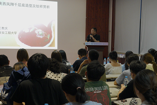 其间,导师们为广大学员作了四场精彩的学术报告。朱医乐老师以《纺织品设计与面料再造》为题,分别从纺织品设计的理念形成、纺织品设计新材料的兴起与高科技的注入等方面介绍,认为“纺织品面料的再造是一种新的艺术表现形式”;高波老师以《织物纹样流派的地域划分与形成规律》为题,从民族纹样、现代纹样、古典图案、装饰图案、模拟纹样、风俗图案等几个方面高度概括了纺织纹样流派的地域性及其形成规律;Simona Sparano老师通过多年的经验和观察,利用丰富精彩的图片总结了当前纺织品的流行趋势和国外最近流行的床上用品设计;王教庆老师以《陕西凤翔千层底造型及纹样赏析》为题,从目的和意义、历史文化背景及现状、造型、题材四个方面详细介绍了陕西凤翔千层底。报告会后,学员们纷纷表示讲座异彩纷呈,受益匪浅。