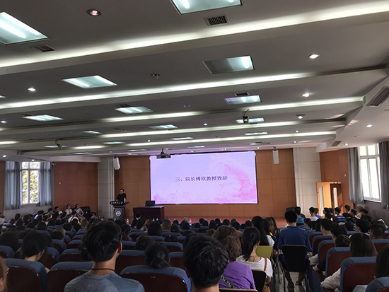 会前,全体2019级新生观看了纺大宣传片。学院院长傅欣代表全院教师对新同学的到来表示热烈的欢迎,并对学院的整体情况作了详细的介绍,同时提出了四点希望:第一,希望同学们能做一个有担当和有情怀的人;第二,希望同学们有一个健全的人格,并学会感恩;第三,希望同学们能关注艺术潮流和科学技术发展;第四,保持健康的体魄,培养体育锻炼的精神。祝愿同学们在美丽的纺大校园里实现自己的艺术理想!