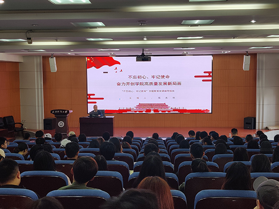 陈良栋书记以《不忘初心、牢记使命——奋力开创学院高质量发展新局面》为题,结合近期学习党的十九大精神和习近平新时代中国特色社会主义思想的收获、体会、感悟和思考为全院师生党员作了主题教育专题党课。