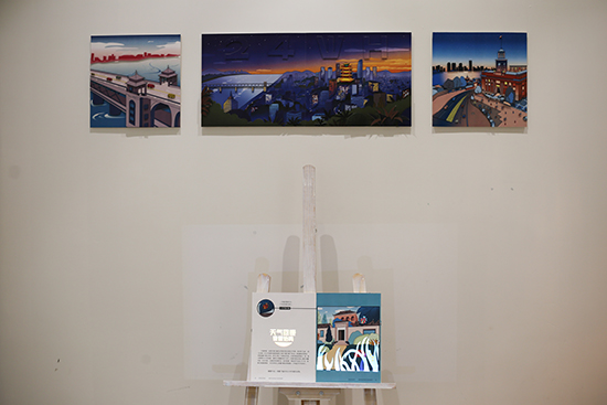 李煊等四位同学的《山海经·未知》以《山海经》这一中国第一部神奇传说为蓝本,将透明亚克力板作为书籍载体,以隐形颜料与紫光灯相结合。让传说与现实,通过灯光的映射,显现与消失。周伦等四位同学的《武汉24》以24节气为索引,将武汉在不同时间段的著名景点以插画的形式展现出来,同时运用投影等科技手段让画面在平面上呈现出动态效果,并辅以场景音效,更好的展现出不同时节中武汉各地的特点。观者能在欣赏时从视觉到听觉全方位的投入到作品之中,更深刻的感受武汉的城市魅力。