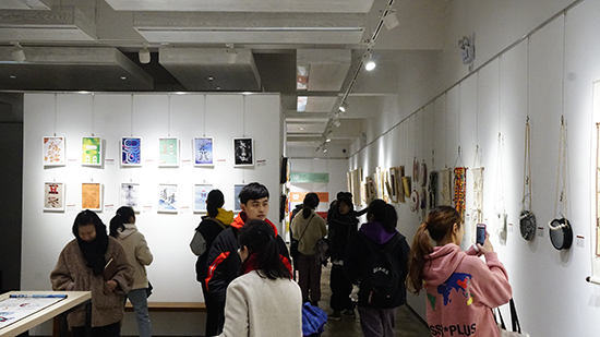 一位同学在观展后说,这是我第三年参观“艺术思政”的展览,之前两年都作为旁观者,而此次作为设计的参与者,进入到展览。在各式样作品中,让我对艺术设计又有了新的认识,设计是有生命的,是不局限于一纸一笔的,而非遗在这次展览中也被赋予了新生命,将传统打破再生再现,以一个全新面貌的出现我们眼前,作品的整体效果非常具有视觉冲击力,形式比以往更具有探索性,主题也更具时代气息,在这里看得出,创作者们用创新的“语言”,创造出对生活的心灵体验,阐释了对美好生活的感知与感悟。另一位同学说,我觉得这些手工编织的包特别有意思,他们取材于生活,使用天然纤维材料、进行刺绣、编织、印染,让这些看起来无用的废料,重新焕发生机和魅力。