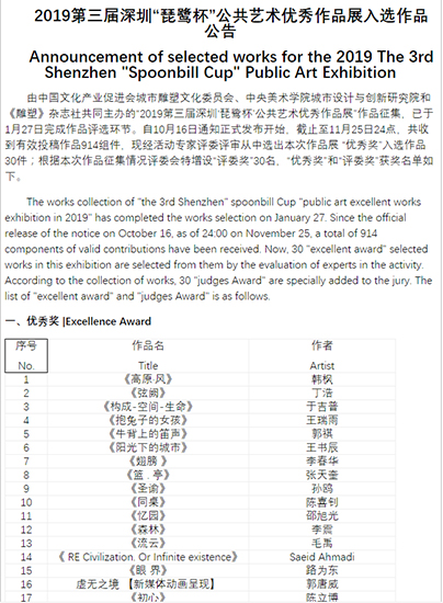 与上两届相比,本届作品国际化的特点更为浓郁,给展览带来了新鲜的要素,也为公共艺术的交流提供了无国界的机会; 其二 ,作品的场域更加鲜明,抽象艺术的作品数量更为突出。今天的中国艺术家不仅能够创作好抽象艺术的作品,还能更注重在地文化的场域意识和对公共价值的追求; 其三,作品更注重内涵和人文深意,不仅提升城市文化的品质,也能够让公众流连忘返; 其四,60位获奖作者中有14位硕士、6位博士、3位国际大师。3位国际大师分别是来自于日本、以色列、德国的艺术家,体现了公共艺术的高度以及未来的属性。
