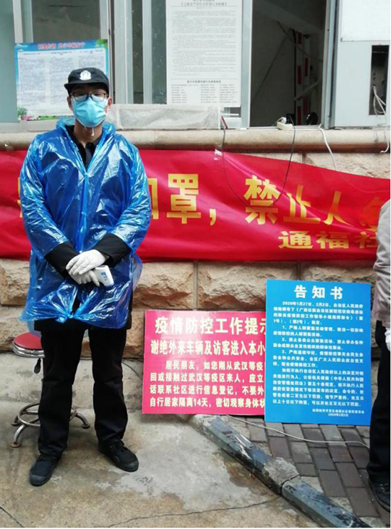 环境艺术设计专业11801班学生,是一名入党积极分子。1月30日,自南宁出现第一例患者以来,全城戒严,我在家长的支持下,自愿加入到社区组建的安保队。主要是为出入小区人员测量体温、记录外来车辆并做好消毒和宣传工作,做社区的病毒“守门员”。
