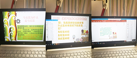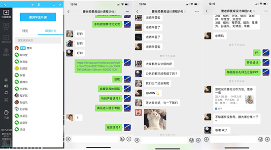 线上开学第一周,我院教师熟练的运用 “雨课堂”“超星平台”“钉钉”“微信平台”“腾讯课堂”等教学软件。老师对学生们首先进行了考勤,以确保每位学生都在线上,然后通过课件PPT进行了生动的讲解。待直播课程结束后,学生们又通过微信群进行了有序的分组,老师也在线上布置了小组作业。