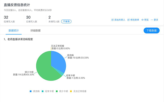 网上教学建议方案”,因钉钉在多方面相对较佳的表现及更接近课堂授课的表现形式,最终选择钉钉作为本专业的网上教学推荐平台。随后,我们组织了30名学生参与到这项工作中,在钉钉的用户使用高峰期进行了一次模拟教学,并通过问卷的形式收集了学生对这种全新教学模式及网络平台使用的评价及建议,帮助各位老师在正式教学中有的放矢,提升教学效果。