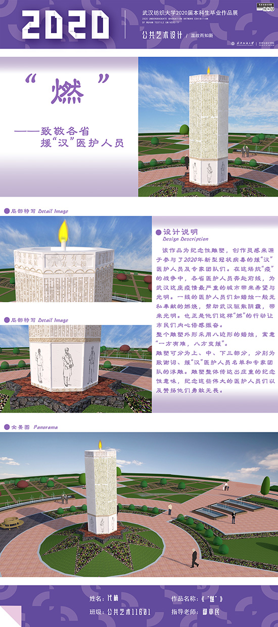 艺术改变了生活,让我们从新的视角去感受人生、体验社会、寻找生命的精彩。2020届公共艺术11601班同学们的毕业设计作品,围绕着同一个主题—温故而知新,在这些作品里能够看到每一位同学对世界、对自我的不同认知和思考,在不同的艺术形式中,我们感受到了无限的活力和想象力,并被作品丰富的创造力深深触动。毕业设计作品凝聚了同学们四年的心血,体现了我们对公共艺术的认知与创新。由于疫情原因,2020届是一群特殊的毕业生,伴随在学习和创作过程中的艰辛和迷茫都是值得珍惜的经历,所有的付出都有目共睹,这一切都将是青春最珍贵的记忆。