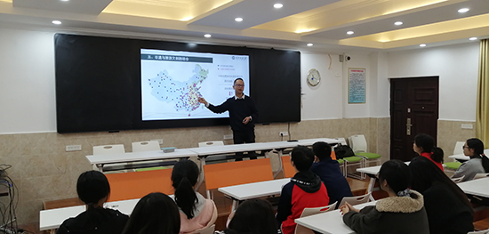 15日,曹刚副院长在枝江二中以《现代生活中的纺织非物质文化遗产》为题作专题人文讲座,此次讲座结合我校专业背景及特色,从“文化遗产简介、纺织非遗分布及类别、纺织类非物质文化遗产审美意蕴、现代纺织非遗在生活中的转变、非遗与旅游文创的结合”五个方面阐述了现代纺织非遗,近一小时的讲座,内容丰富、话语质朴、贴近生活,为到场的教师和学生展示了非遗艺术的魅力,让大家深受感染与启发。讲座的最后,曹刚副院长提出希望同学们要有坚定的文化自信,更好传承中华传统文化。