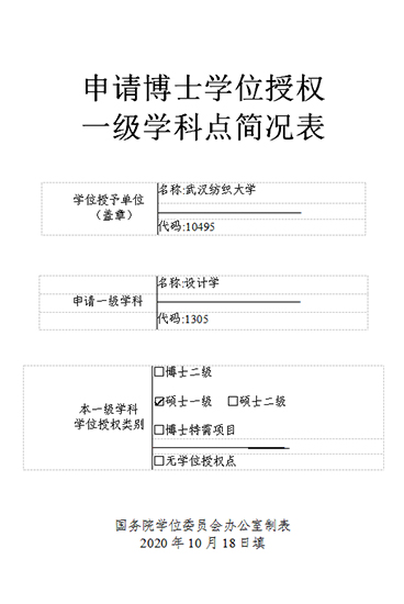 全面打响“申博”攻坚战,对标申博,以评促建,以学科建设上水平为出发点,更新办学理念与学术思想,在现有设计学基础上,强调理论与实践结合、研究与创造结合、多学科智慧跨界结合,提高办学水平和师资力量,以培养国际化背景下的市场创业型高端设计人才为目标,打造国家级研究与创新团队,进一步提升学院科研实力和社会影响力。进一步完善学科布局,“十三五”期间,艺术学院已形成以设计学、艺术学理论两个一级学科硕士学位授予点为支撑,一个艺术专业硕士学位授予点为主力的学科布局。2020年12月经省学位委员会全体会议审议通过,获湖北省2020年拟新增博士学位授权点推荐资格,实现“申博”重大突破。