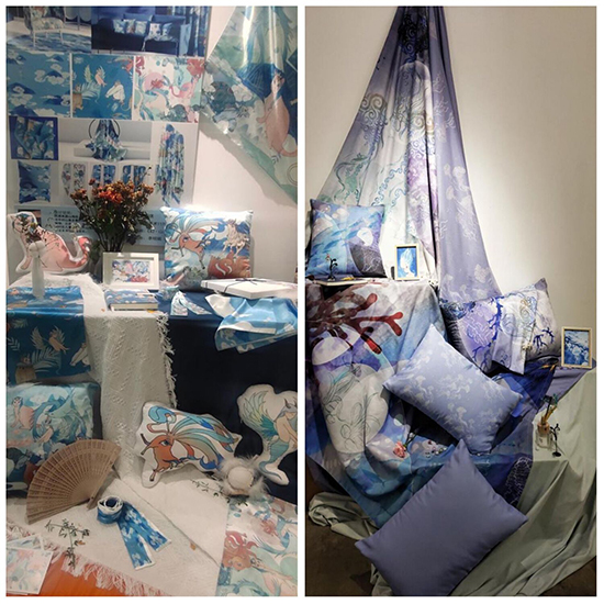工艺美术系毕业生们通过四年的学习和感悟,运用传统印染、织花等工艺,以“意.心”为主题创作出了属于他们的毕业设计作品。展览的作品涵盖了纺织品面料、纺织品产品和纤维艺术,不同的材料在加工工艺时赋予了作品新的生命和创作者的情感表达。系主任高波老师介绍到,2021届毕业生们通过对加工工艺知识的学习和运用,既掌握了较强的专业技能,也为传承中国传统文化,培养毕业生们理论实与践相结合的能力,更为他们步入社会或继续深造打下了坚实基础。