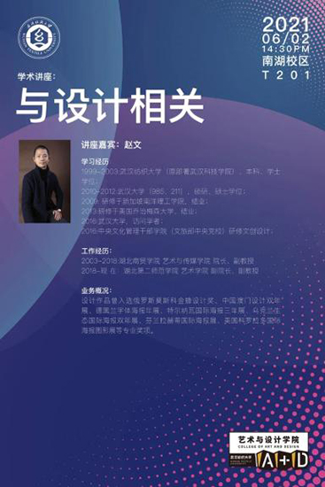 2003届校友赵文先生则从自身出发,对设计习惯进行了分享,坚持记录生活中有意义的、美的事物,从生活出发,热爱生活、热爱设计,让不少学生感受到了设计的乐趣。“坚持和热爱是一路上最大的动力和支持!”,让同学们在艺术学习和艺术创作的道路上更多了一份信心!