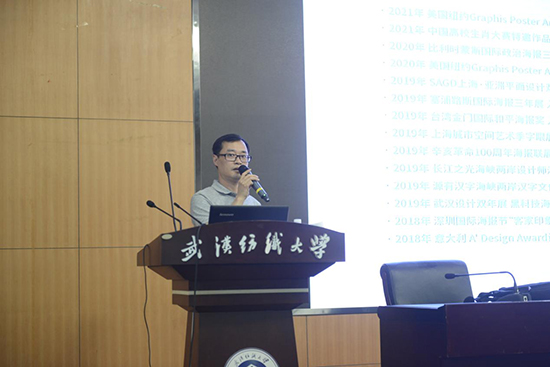 邀请,三位知名校友返校给南湖校区在校生做了专场学术讲座。他们分别是意大利“A' Design Award设计大奖” 国际评审严章联、湖北美术学院教授叶佑天、湖北第二师范学院艺术学院副院长赵文。艺术学院沈志红教授、视觉传达设计系主任黄龙飞、青年教师田原及200多名学生参加了讲座,讲座由学院副院长曹刚主持。