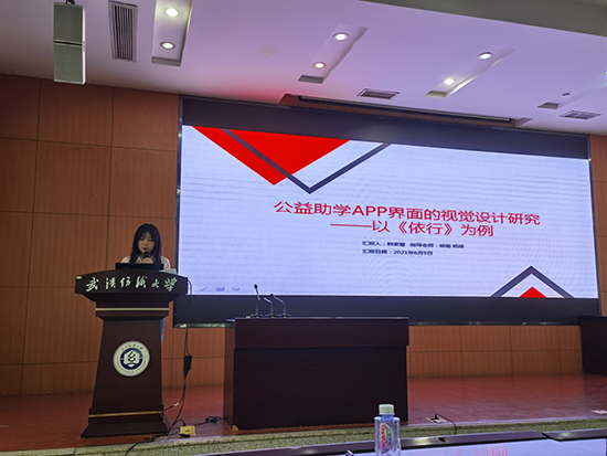 传媒学院数字媒体艺术专业韩紫馨同学作题为《公益助学APP界面的视觉设计研究——以<依行>为例》的主题报告;