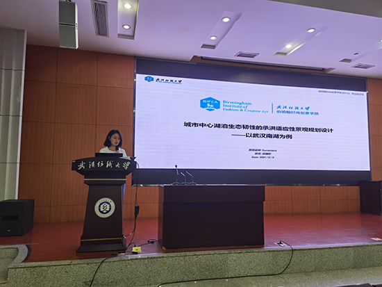 伯明翰时尚创意学院环境设计专业张珈珩同学作题为《城市中心湖泊生态韧性的承洪适应性景观规划设计——以武汉南湖为例》的主题报告;