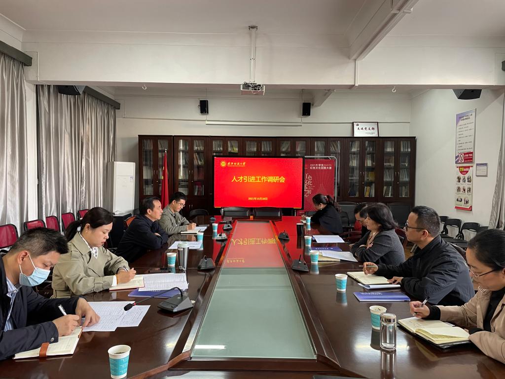 调研人才引进工作,与学院全体班子成员深入交流,学校办、人事处相关领导和工作人员参加了调研会。